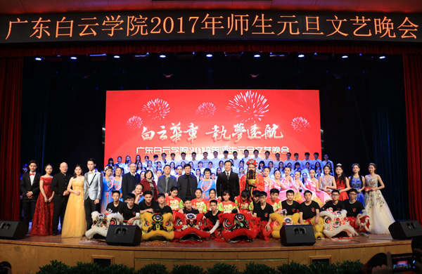 12月29日晚上,我校隆重举行“白云华章 执梦远航”2017年师生元旦文艺晚会。董事长谢可滔、副董事长谢少华、校长黄大乾、党委书记刘剑锋、党委副书记李纯英、副校长刘跃南、校长助理肖军田、董事长助理彭本林与学校师生欢聚一堂,共迎新年。校长黄大乾致新年贺辞。