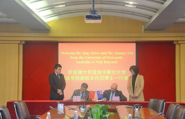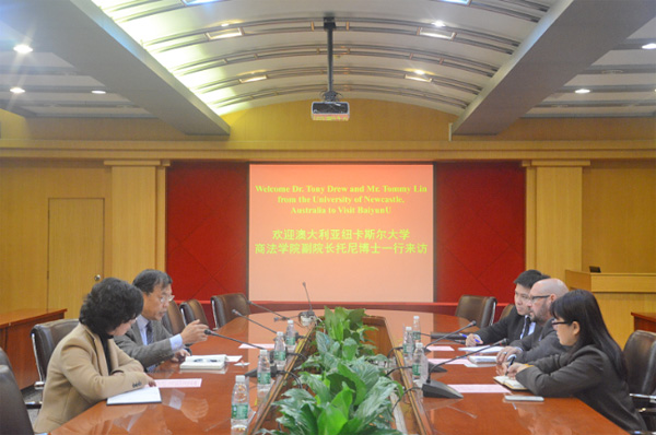 3月24日,澳大利亚纽卡素大学法商学院副院长托尼·德鲁一行来我校洽谈合作事宜。我校副董事长谢少华、副校长沈根生与来访的德鲁副院长、纽卡素大学国际处大中华区林智聪经理及纽卡素大学官方合作机构代表蒋伟博士进行了深度、卓富成效的交流。双方在MBA网络课程、2+2学分互认双学士学位项目(会计、国际经济与贸易、市场营销、工商管理)、3+1.5HND专升本、英语业3+1+1本硕连读项目等课程方面的合作达成了一致意见,副校长沈根生代表学校与对方签署了合作备忘录。