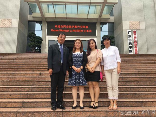 我校副校长沈根生(左二)与来宾在行政楼前合影