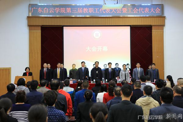 12月23日,广东白云学院第三届教代会暨工会代表大会(简称“双代会”)隆重召开。董事长谢可滔、副董事长谢少华、校长黄大乾、党委书记刘剑锋、党委副书记李纯英、副校长刘跃南、副校长沈根生、校长助理肖军田、董事长助理彭本林等领导出席会议。110名正式代表及19名列席代表齐聚儒学堂,共商学校发展大计。谢可滔董事长致辞。黄大乾校长作工作报告。党委书记刘剑锋作总结讲话。党委副书记李纯英主持开幕式。