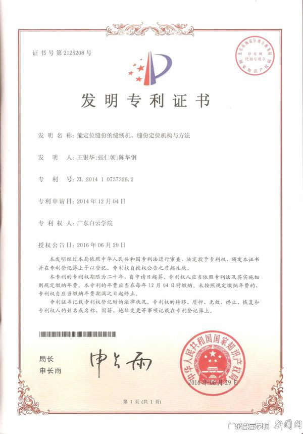12月6日,2016年广东大学生科技创新培育专项资金作品攀登计划项目“一种新型教学用六轴工业机器人”即“白云1号”六轴工业机器人在广东白云学院成功研制。