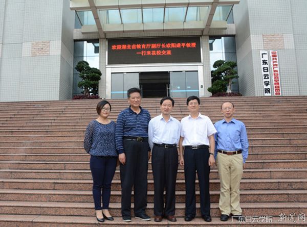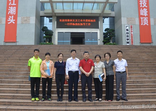 我校董事长谢可滔、副董事长谢少华、校长黄大乾、党委书记刘剑锋等人接待了副主任委员王佐书、严以新一行。王佐书副主任委员针对我校改革发展过程中所取得的成绩,提出了“争锋相对、与时俱进、人好活好”的发展指导意见。