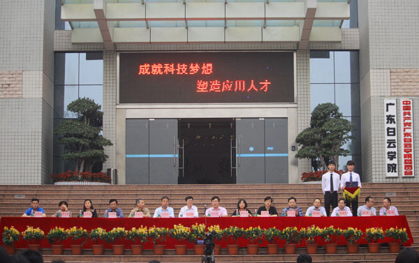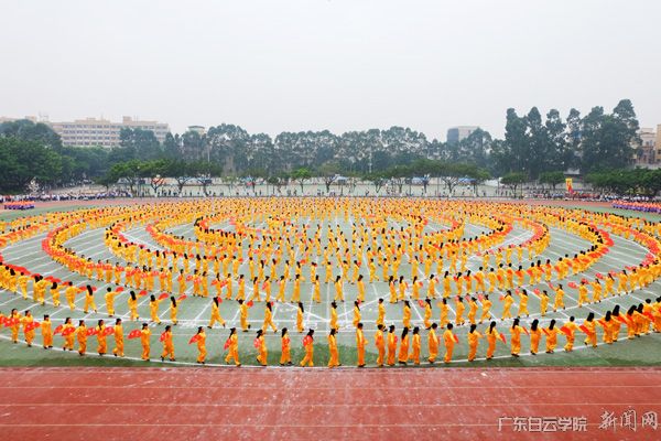 11月17日上午,广东白云学院以“努力拼搏 放飞梦想”为主题的第十八届校运会在西区运动场隆重开幕,开幕式由校体委主任、副校长刘跃南主持,校长黄大乾为运动会致开幕辞。开幕式上进行了气势磅礴、美轮美奂的文艺表演,由学生团队通过WIFI对开幕式在网上进行了现场直播。据统计,广东白云学院第十八届体育运动会开幕式的几个视频的网络点击率突破40000人次。