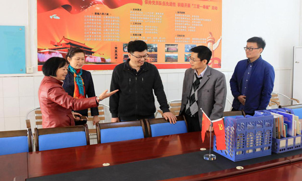 我校党委副书记李纯英(左一)汇报学校党建工作