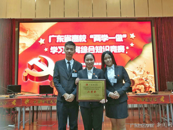 12月15日,由我校建筑工程学院肖杨杨老师、外国语学院林显锐同学、财经学院陈洁玟同学组成的参赛队伍代表广东白云学院参加在华南师范大学石牌校区教育信息技术学院举办的广东省高校“两学一做”综合知识竞赛荣获二等奖。