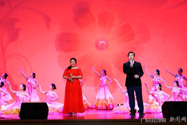 校长黄大乾(右)登台献唱歌曲《为了谁》