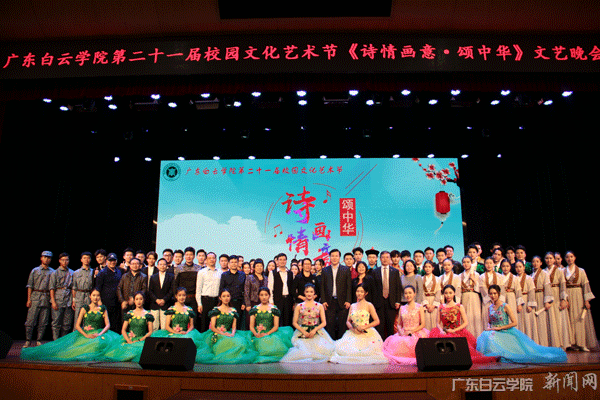 12月3日晚,广东白云学院第21届校园文化艺术节之《诗情画意.颂中华》文艺晚会在东区大礼堂隆重举行。副董事长谢少华、校长黄大乾、党委书记刘剑锋、党委副书记李纯英、副校长吴立平、副校长沈根生、校长助理肖军田、校长助理李红英、校长助理陈峰等领导出席本次晚会。