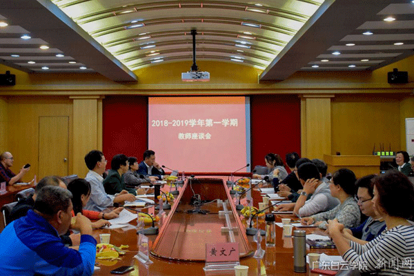 11月21日下午,我校在国际会议厅召开2018-2019学年第一学期教师座谈会。副校长吴立平、校长助理李红英出席会议,科研处处长周美娟、总务处处长欧阳志强、教育技术中心科长谭鑫、教务处全体工作人员及来自各学院的22位教师代表参加会议。会议由教务处副处长李念良主持。