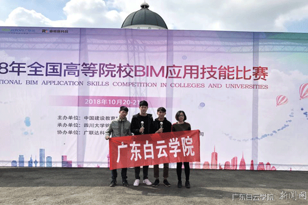 全国高等院校BIM应用技能比赛是中国建筑领域最具影响力的全国级顶级赛事之一,比赛共吸引了来自全国177所高等院校的352支队伍,超过1500名师生参赛。广东白云学院共派出了两支学生代表队参赛,分别由建筑工程学院工程造价系主任赵蓓蕾老师指导,2015级工程造价3班谢志敏、工程造价4班陈林杰和2016级工程造价2班郑铠航同学组成的“启航团队”,和由工程造价系谭紫老师指导,2015级工程造价1班王国庆、谭雯玉、2016级工程造价造价2班张琼希同学组成的“白云梦之队”。经过紧张激烈的角逐两支代表队双双从352支队伍中脱颖而出,一举夺得两个第一、两个第三的优异成绩。其中,“启航团队”夺得“BIM招标项目管理”专项赛第一名和团队第三名,“白云梦之队”夺得“建筑与装饰工程量计算”专项赛第一名和团队第三名。