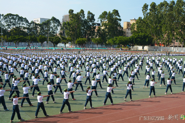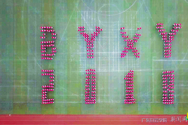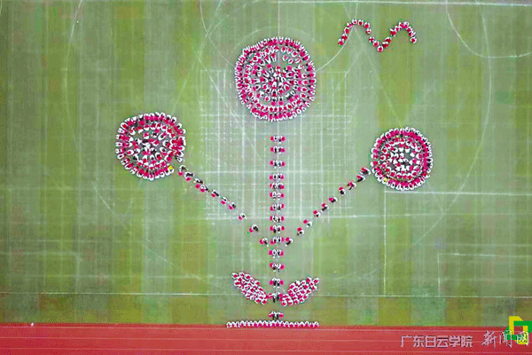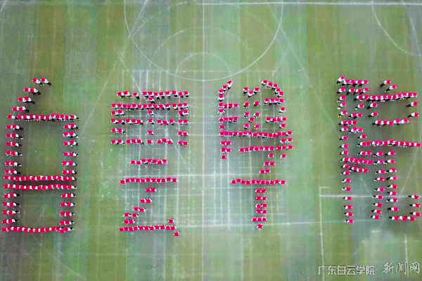 花样方阵节目表演航拍图(400多名学生组成图案“白云学院”)