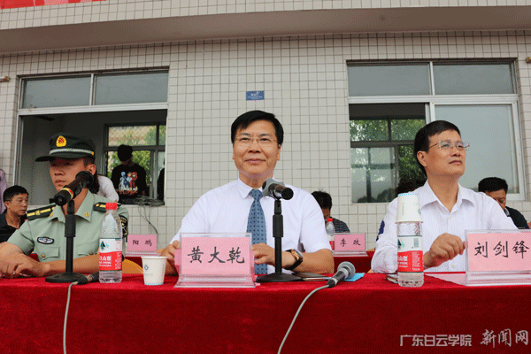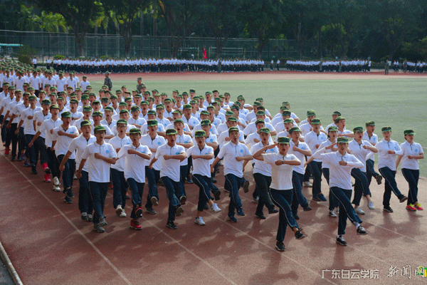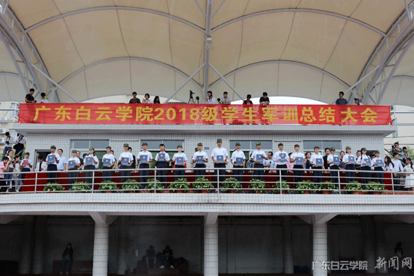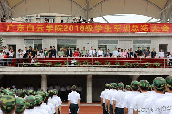 11月15日上午,广东白云学院2018级学生军训总结表彰大会在西校区运动场隆重举行。校长黄大乾、党委书记刘剑锋、党委副书记李纯英、副校长吴立平、副校长沈根生、校长助理陈峰、军训团团长(广州市民兵预备训练基地队长)曾金林等领导出席大会。军训教官、2018级全体受训学生及部分学生家长参加大会。校长黄大乾检阅军训方阵并作重要讲话,校长助理陈峰主持会议并宣读 《关于表彰2018级军训先进集体与优秀个人的决定》,军训团团长曾金林作军训总结报告。大会中,2018级全体学生以严整的军姿、高昂的士气、整齐的步伐、宏亮的口号、精彩的表演,接受了领导、家长和老师们的检阅。