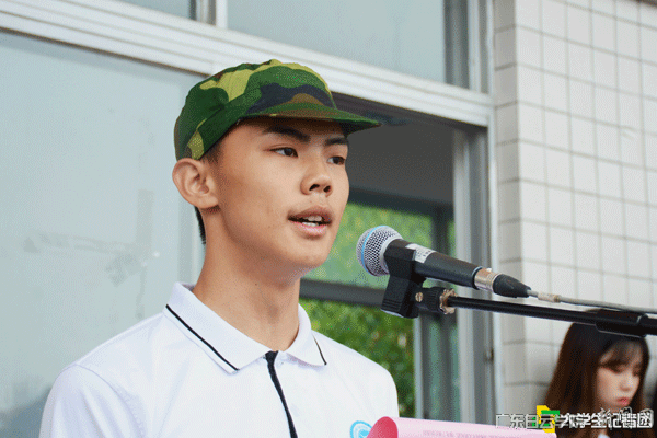 军训优秀个人、会计学院2018级财务管理1班王澍彬同学发言。他谈到,军训是一段难忘的经历,它历练了我们严明的组织纪律观念,不怕苦、不怕累的作风,坚韧不拔的意志和勇往直前的精神,这种精神将是我们人生中宝贵的财富。