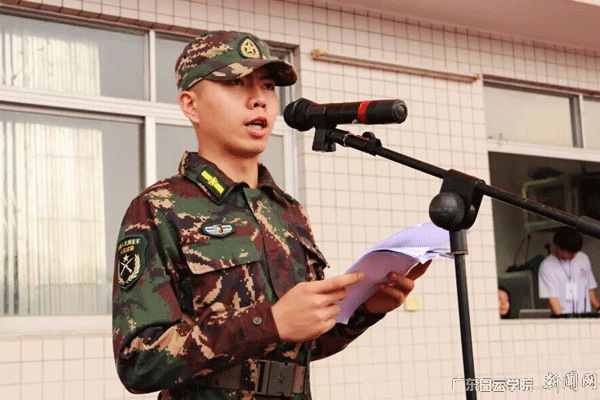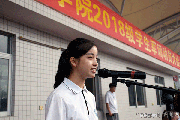 来自新媒体学院播音主持专业2018级新生刘丽君作为新生代表发言。她谈到,加入广东白云学院是人生中一个崭新的起点,经过两个月的学习逐渐地了解白云,认识白云。表示在今后的大学学习生活中会认真规划并积极实践。会认真对待为期11天的军事训练,服从命令,听从指挥,严守纪律,争当标兵,锤炼意志,团结互助,充分演绎新一代大学生的青春风采。