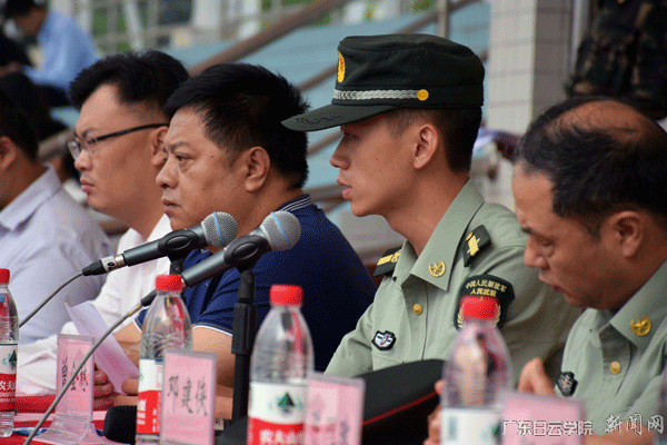 军训团团长、广州市民兵预备训练基地队长曾金林作动员讲话。曾团长指出,军训作为大学生接受国防教育,履行兵役义务的基本形式,培养同学们的爱国主义、革命英雄主义、集体主义和吃苦耐劳的精神,增强同学们的组织纪律性,锻炼提高同学们的体魄和独立生活能力,并掌握一定的军事本领。鼓励同学们通过军训勇敢地锻炼自己,不畏艰难、磨练自己的意志。他对本次军训提出三点希望,一是要求同学们要把自己当做一名真正的军人,严格要求自己,继承和发扬不怕苦、不怕累、艰苦奋斗的精神,克服困难、努力拼搏;二是希望同学们在接下来的军训中,学会关心集体,关心他人,建立深厚的战友情、同学情,增强班级荣誉感;三是希望同学们每天训练后要认真总结,及时深化心灵深处的精神力量,使之成为将来学习、生活和工作所需的宝贵财富。