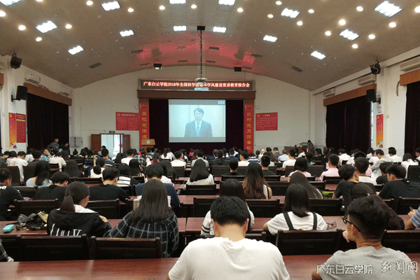 10月15日下午,主题为“以习近平新时代中国特色社会主义思想为引领,大力弘扬新时代中国科学家精神和爱国奋斗精神”的2018年全国科学道德和学风建设宣讲教育报告会在北京人民大会堂举行。我校校长助理陈峰、教师代表88名和学生代表150名在儒学堂通过网络视频同步收看报告会。
