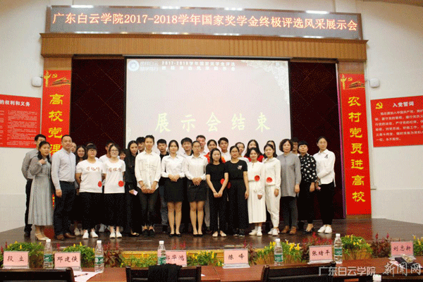 10月11日,以榜样白云,励学笃行;寻找白云最闪亮的那些星;为主题的2017-2018学年国家奖学金终极评审风采展示会在儒学堂隆重举行,校长助理陈峰、通识学院院长张绪平、马克思主义学院院长郭华鸿、党委教师工作部部长、大学生德育研究所所长刘志新及二级学院党总支书记出席会议,并担任本次国家奖学金终极评审风采展示会的嘉宾评委,决出我校的16名国家奖学金初审名单。