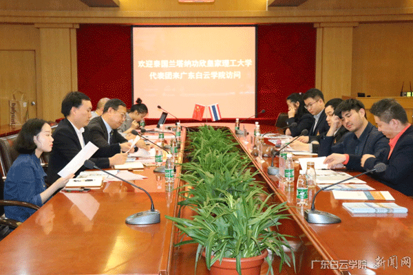 沈根生副校长十分赞成Nuttapong Jotikasthira院长提出的与广东白云学院合作的意愿,指出两校的工程类、财经类、管理类专业具有相似性,希望达成3+2本硕连读合作模式,可以在课程、资源、师生、科研等领域开展交流合作,认为兰塔纳功欣皇家理工大学创新管理博士学位的培养模式(针对教师)灵活性强,经济实惠。沈校长指出,两校合作是双向的,欢迎兰塔纳功欣皇家理工大学师生来我校交流,也鼓励学校发展成为我校在东南亚的海外留学生招生基地。