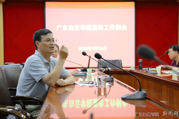 9月26日上午,广东白云学院在国际会议厅召开宣传工作会议。学校党委书记刘剑锋出席会议并作重要讲话。全体宣传干事及学生记者代表参加会议。会议由党委宣传部部长胡小锐主持。