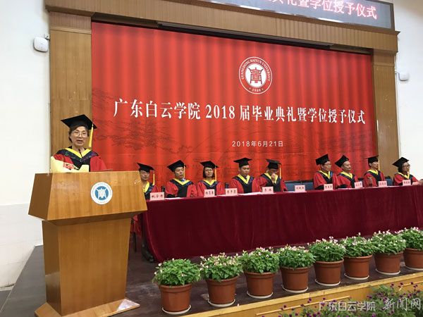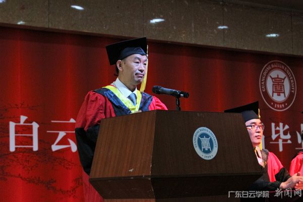 师生别离话珍重,临行教诲意深长。外国语学院院长何高大寄望同学们把握好属于自己的人生舞台、演好人生中的每一个角色,做最优秀的自己。他强调,成长务必在于学习、在于经历、在于领悟、也在于静修,不忘初心、终身学习;要心存梦想、心存坚持、心存善念、心存感恩、心存美好、心存同学、心存母校;不忘初心、心存白云。欢迎同学们有空常回母校看看,白云永远是同学们学舞、练舞的大舞台,老师们永远是大家的导演和陪练,我们青春不散场,我们不说再见,期待在同学们五彩缤纷的舞台上再见。艺术设计学院院长陈华钢以一位师长的身份,向圆满完成学业并即将奔赴新的学习和工作岗位的毕业生们表示最热烈的祝贺!要求同学们迈出校门后要继续学习,扎扎实实走好人生每一步,并祝愿同学们在今后的道路上披襟斩棘,大展宏图,梦想成真!应用经济学院院长吴铁雄寄语毕业生们要发挥“追求卓越,敢为人先”的白云精神,用积极的心态去担当社会责任,去追逐梦想,去改变世界。机电工程学院院长曹玉华希望各位毕业生:“要大气为人,大智谋事,大爱行天下”,并送给毕业生三句话:“不要戴着灰色的眼镜看世界”“世界上的事情都是干出来的”“人是要有点境界”。院长们饱含深情又富有哲理的讲话令人动容。