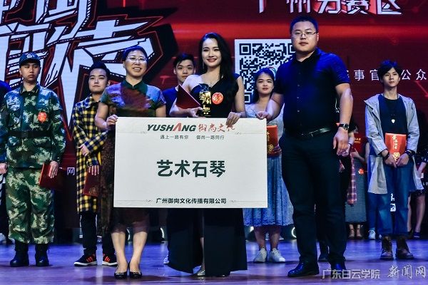 副校长吴立平(前排左一)为广州市赛区总决赛冠军赖亚媛颁奖