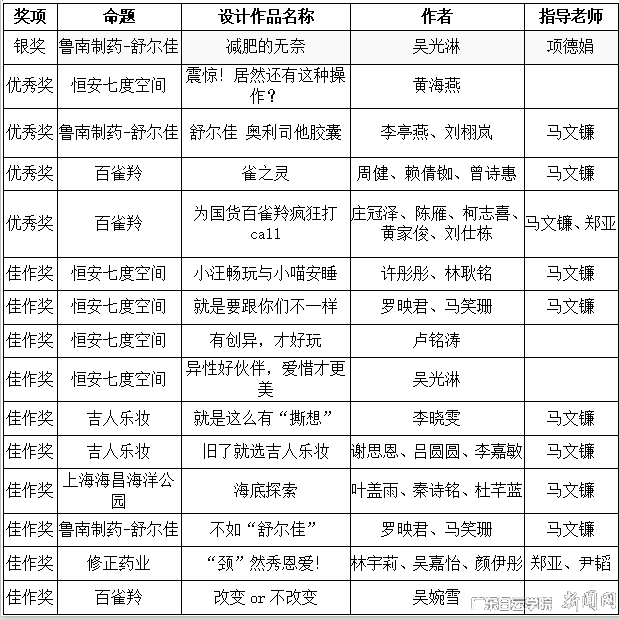 第15届中国大学生广告艺术节学院奖秋季赛获奖情况