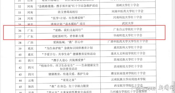 据悉,该项目启动后,共有30个省级红十字会申报98个项目,其中广东省有两个优秀项目获得资助,分别是华南师范大学红十字协会和我校红十字协会,该项目的申报成功,也是对我校长期重视和加强社团文化建设、积极践行中国红十字总会人道、博爱、奉献精神,保护人的生命和健康,促进人类和平进步事业的宗旨的一种积极肯定 。下一步,校团委将认真指导红十字协会按照《关于实施2018年红十字青少年社会实践项目的通知》要求做好相关工作。(文/校团委王晓艳、红十字协会周绮珊 图/红十字协会宋雪芬)