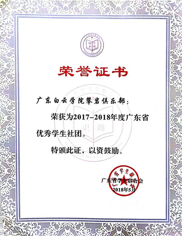 从省学联发布的《关于表彰2017-2018年度广东省优秀学生会、优秀学生社团、优秀学生干部的决定》文件中获知,我校校学生会被评为2017-2018年度“广东省优秀校学生会”;攀岩俱乐部被评为2017-2018年度“广东省优秀社团”;广东省学生联合会秘书处宣传调研部副部长李镓洧被评为2017-2018年度“广东省优秀学生干部”;我校校学生会主席李柏帆被评为2017-2018年度“广东省优秀学生干部”。