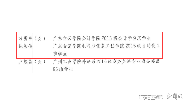 会计学院2015级会计学9班刁雪宁、电气与信息工程学院2015级自动化1班陈智伟被评为2017-2018年度“广东省优秀共青团员”