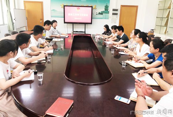 为深入贯彻落实《广东省高校共青团2018年工作评价考核方案》文件要求,大力推进从严治团,推动我校共青团各项工作的科学化、规范化。5月22日下午,校团委在学生处会议室组织召开团务工作交流会,团委书记王晓艳、团委副书记段立、团委其他干部及各二级学院团总支书记参加会议。
