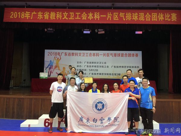 5月12日,2018年广东省教科文卫工会本科一片区气排球混合团体比赛在广东技术师范学院综合馆举行。我校作为唯一的民办高校代表参赛,和华南理工大学、暨南大学、华南农业大学、广州体育学院等高校同台竞技,在比赛中团结作战,奋勇拼搏,最终取得第四名,彰显学校实力。