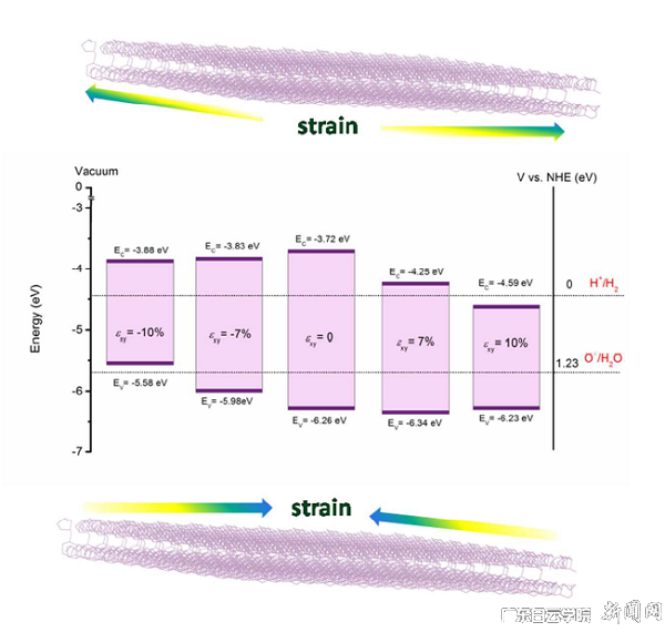 图为应力调控下的单层紫磷烯显示出在可见光波段范围内光解水的潜力