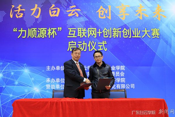 启动仪式在高亢激昂的校歌拉开了帷幕,学校副校长沈根生代表学校与广东力顺源智能自动化有限公司黄惠平总经理签订本次大赛合作协议。据悉,我校与广东力顺源智能自动化有限公司的战略合作肇始于今年3月,现已在学校建立力顺源智能化中心,合作取得较好的成果。本次开展互联网+创新创业大赛,是在原有合作的基础上再次携手共进,必将取得更加丰厚的育人效果,助推我校创新创业事业再上新台阶。