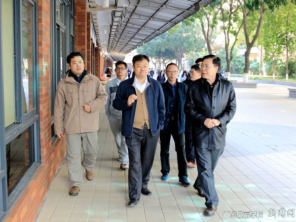 黄大乾校长(右一)陪同刘志敏处长(右二)一行参观我校U创长廊