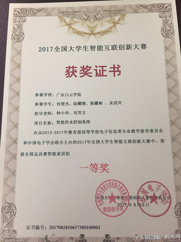 2017年,在机电工程学院领导的带领下,学院创新创业中心硕果累累,续2016年发明“白云1号”工业机器人后,2017年他们再次研制出多功能自动切割焊接机;学生团队参加各级各类竞赛成绩突出,多次获奖,如:在2017年第二届全国大学生智能互联创新大赛中荣获一等奖;在2017年第七届蓝桥杯全国软件和信息技术专业人才大赛中荣获全国总决赛二等奖;在第十届“高教杯”全国大学生先进成图技术与产品信息建模创新大赛中荣获国家一等奖1项、国家二等奖4项、国家三等奖2项;在2017年第二届全国大学生智能互联创新大赛中荣获华南赛区一等奖;在2017年第七届蓝桥杯全国软件和信息技术专业人才大赛广东赛区中荣获一等奖三项,二等奖一项、三等奖一项;在创新创业训练项目中,完成国家级创新项目一项,省级创新项目一项,校级创新项目四项,校极创业项目三项;共发表论文11篇,其中张兴华老师发表了10篇。