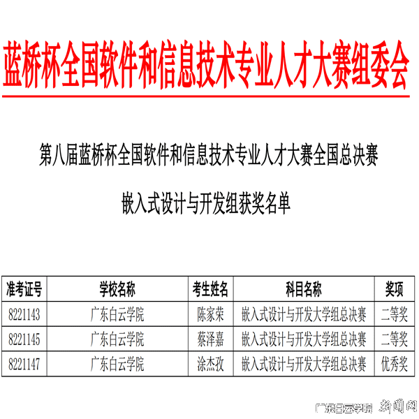 第八届蓝桥杯全国软件和信息技术专业人才大赛全国总决赛嵌入式设计与开发组获奖名单