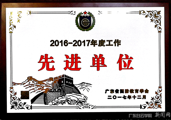 我校荣获广东省“2016-2017年度国防教育先进单位”荣誉称号
