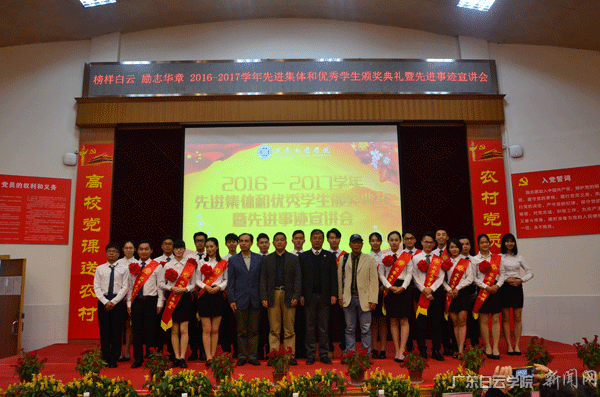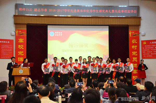 12月14日,“榜样白云 励志华章 2016-2017学年先进集体和优秀学生颁奖典礼暨先进事迹宣讲会”在儒学堂隆重举行。校长黄大乾、校党委书记刘剑锋、副校长刘跃南、副校长沈根生、各二级学院和职能部门负责人出席了此次会议,本次大会还特邀李志红奖学金创建人李志红老师爱人林向阳先生和姐姐李志凌女士出席参与。
