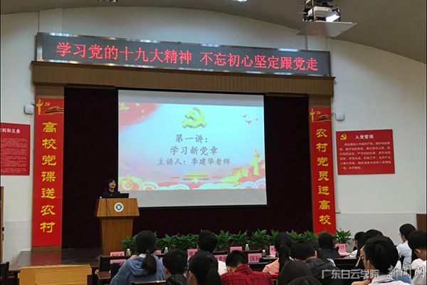 11月14日下午,广东白云学院党校第十二期高级培训班在儒学堂举行开班仪式。校党委副书记李纯英、党委组织部副部长李建华,各二级学院学生党支部书记以及本期高级培训班学员和我校2017年新转入党员共200多人参加了开班仪式,仪式由组织部林显锐同志主持。