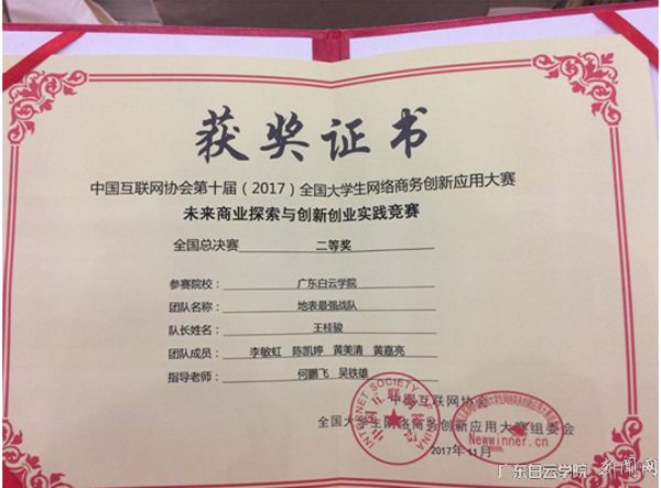 近日,第十届全国大学生网络商务创新应用大赛未来商业探索与创新创业实践竞赛全国总决赛在北京中关村互联网教育创新中心圆满结束。由我校应用经济学院院长吴铁雄带队,经济统计学专业教师何鹏飞担任指导教师的我校代表队参加了最后阶段的角逐。中国互联网协会、中国高等教育学会高等财经教育分会联合主办的本次大赛,本次大赛主办方共收到来自全国200所高校近2000份作品。我校2015级经济统计学专业1班的王桂骏、黄嘉亮,2015经济统计学专业2班的李敏虹,2015级会计学10班的陈凯婷、黄美清共5名同学组成的战队经过初赛、复赛的选拔,成功入围全国总决赛。
