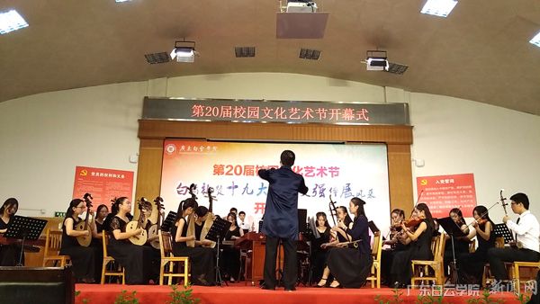 中国著名指挥家、作曲家,星海音乐学院教授,我校民乐团音乐总监李复斌老师、新媒体学院播音主持专业学科带头人李建军老师联合校民乐团、播音主持专业学生联袂给大家带来了一场音乐会的视听盛宴。有管弦乐合奏《北京喜讯到边塞》、《瑶族舞曲》,有古筝重奏《春花望露》,还有入围了广东省第五届大学生艺术展演戏剧类决赛的音诗画节目《烈火中永生》,吸引现场观众掌声不断。