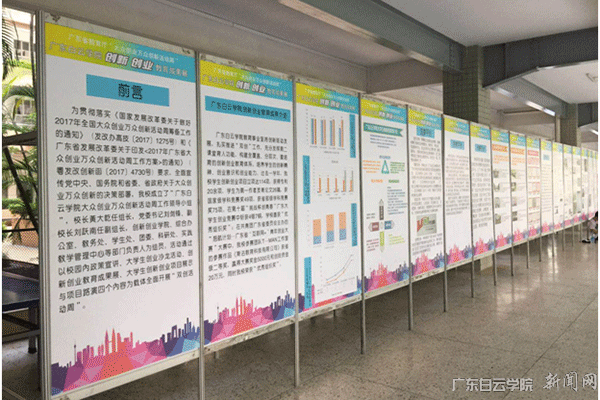 9月18日,根据“广东白云学院关于开展大众创业万众创新活动周专项工作会议”的工作部署,《创新创业基础》课程的任课教师在课内宣传“大众创业 万众创新”的核心精神及学校出台的创新创业相关政策,积极引导学生加强创新能力锻炼及创新思维培育。随后,创新创业学院组织2016年广东白云学院大学生创新创业训练计划项目立项、结项的项目部分成员及2017年广东白云学院大学生创新创业训练计划项目,立项的项目部分成员参观学习学校历年来创新创业教育成果展,积极引导学生加强创新能力锻炼及创新思维培育。