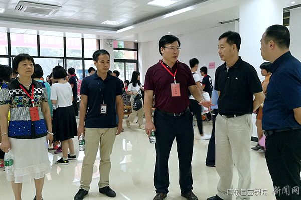 校长黄大乾(右三)、党委书记刘剑锋(右四)等领导在艺术设计学院指导迎新工作