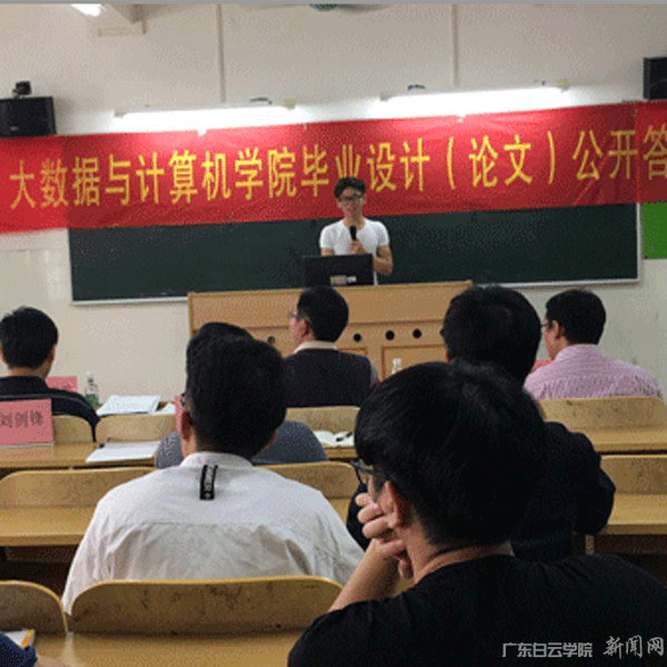 5月8日上午,大数据与计算机学院在博雅608举行了2017届毕业设计(论文)公开答辩,这是继4月27日大数据与计算机学院在广州市腾科科技有限公司举行2017届毕业设计“真题真做”第一场公开答辩会后的第二场校内公开答辩。答辩评委会由广东白云学院企业实践教学中心主任张国安、企业实践教学中心石勇老师,广东中星控股集团有限公司教学总监钱康杰、广州粤嵌电子通讯科技有限公司技术总监冯宝祥,大数据与计算机学院院长万世明、副院长徐宝林、计算机系主任李春平等多名教授专家组成。