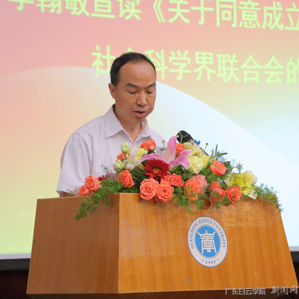 省社科联副秘书长、办公室主任李翰敏在会上宣读省社科联《关于同意成立广东白云学院社会科学界联合会的批复》和《关于增设第三批广东省决策咨询研究基地的通知》。