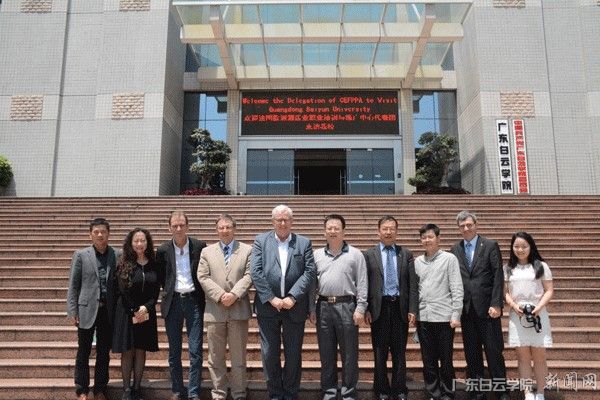 广州市白云工商技师学院校长李孟强(右五)、广东白云学院副校长沈根生(右四)、校长助理肖军田(右三)等和Roger Sengel总裁(左五)一行合影
