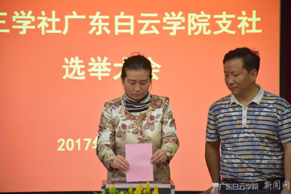 选举大会按照《九三学社章程》要求,以无记名投票的方式,选举产生了九三学社广东白云学院支社(白云区6支社)第一届支委会,分别由刘明飞(广东白云学院会计学院副院长)、凌杰(广东白云学院应用经济学院教师)、雷萍莉(广东白云学院大学英语教学部教师)担任支社主委、副主委和委员。