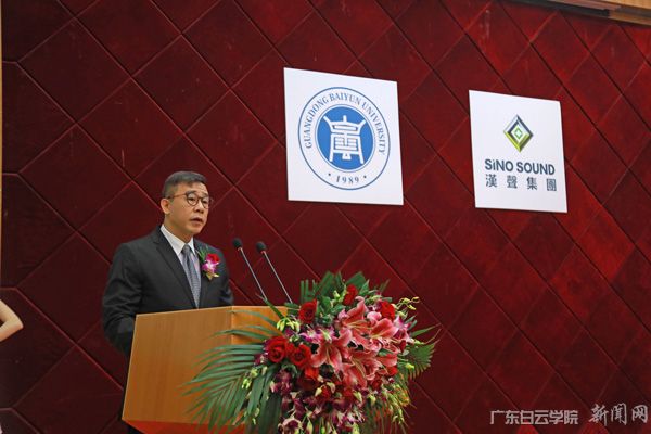 3月23日,广东白云学院应用经济学院与汉声集团有限公司共建汉声商学院开班典礼在广东白云学院儒学堂隆重举行。广东白云学院校长黄大乾、副校长刘跃南、副校长沈根生、应用经济学院院长吴铁雄,香港汉声集团首席执行官张立仁先生、香港汉声集团首席业务发展官李正文先生、香港汉声集团财务总监梁智坚先生、集团主席秘书徐嘉琪小姐、集团资深分析师张新才先生、汉声投资控股有限公司营运总监庄兴先生、广州市外商投资企业协会秘书长敖少华先生、广州市招商协会副秘书陈穗先生等出席了本次大会。