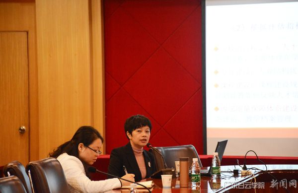 3月13日上午,我校邀请到汕头大学教务处处长蔡映辉研究员和肇庆学院教学评估与督导中心主任郝向英教授作主题为“审核评估评建工作及体会”的专题讲座。学校党委书记刘剑锋、副校长刘跃南出席活动。各职能处室负责人、各二级学院正(副)院长、各专业负责人、各系系主任及评鉴中心全体工作人员听取了讲座。