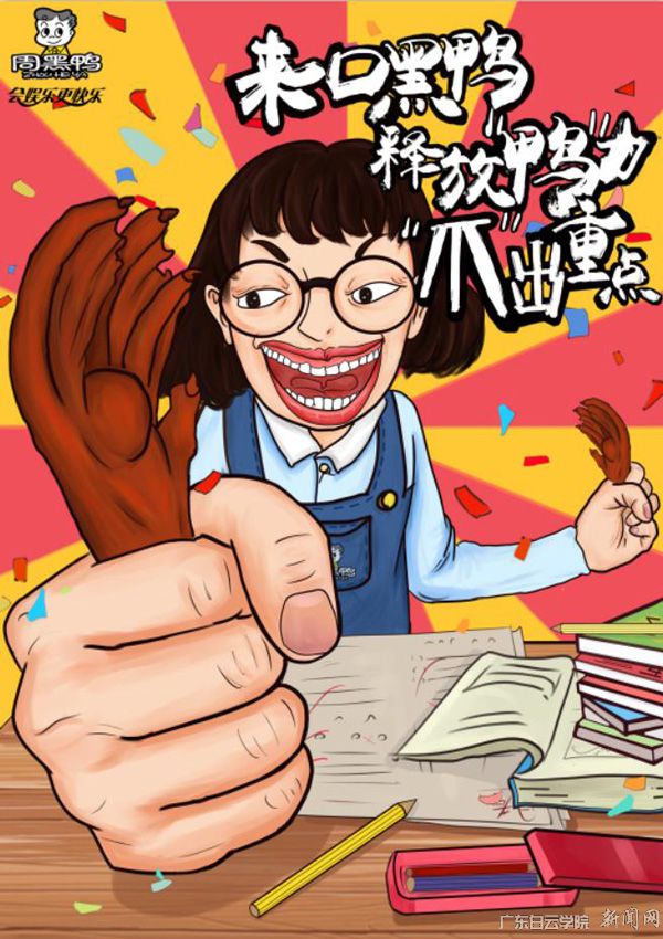 3月18日,第十四届中国大学生广告艺术节学院奖秋季赛评选结果在北京中央电视台梅地亚中心揭晓,广东白云学院参赛师生继春季赛取得的好成绩后再次荣获银奖1项,铜奖2项,优秀奖30项,佳作奖22项。 其中,我校艺术设计学院荣获“优秀组织院校奖”荣誉称号;2015级视觉传达设计专业郑小晶同学的设计项目《周黑鸭》获银奖(指导老师马文镰、徐莉);2014级视觉传达设计专业梁艺家、胡艺瑜两位同学的设计项目《爱回收-口袋优品》(指导老师郑亚)及2015级视觉传达设计专业林子沣同学的《楚楚街》设计项目(指导老师徐莉、尹韬)获铜奖。马文镰、徐莉、郑亚、尹韬等四位老师荣获“杰出指导教师”荣誉称号,成骏、项德娟、陈诗雅等三位老师荣获“优秀指导老师”荣誉称号。