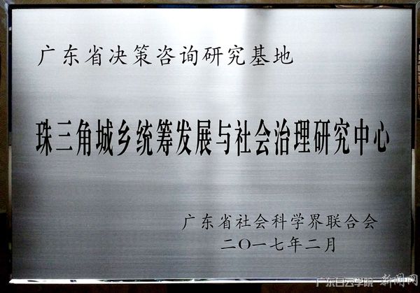 我校“珠三角城乡统筹发展与社会治理研究中心”成功申报为广东省决策咨询研究基地